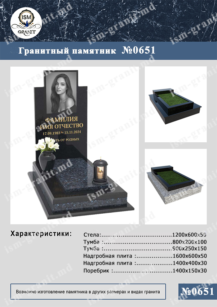 32.190 MDL Доставка и установка памятников. Способы оплаты при заказе памятника • Оплата заказанных памятников, мемориальных комплексов, надгробных плит, оград и т.д производится наличным и безналичным расчётом. • Предоплата составляет 50% и вносится в кассу или на расчетный счет после подписания договора-заказа. При полной оплате заказа — скидка 3% • Оставшаяся сумма оплачивается заказчиком после установки памятника и/или принятии всего комплекса работ. Способы оплаты при заказе памятника в регионы Молдовы и Приднестровье • Оплата заказанных памятников, мемориальных комплексов, надгробных плит, оград и т.д и отправка изделий в регионы Молдовы и Приднестровья производится наличным и безналичным расчётом. • Предоплата составляет 50% и вносится на расчетный счет (карточный счет) после оформления заказа на сайте компании. При полной оплате заказа — скидка 3%. • После того как памятник изготовлен, заказчику отправляются фото и видеоматериалы (при желании) готового изделия для одобрения. • После одобрения оплачивается оставшаяся сумма и заказ отправляется заказчику удобным ему способом с предварительным согласованием способа доставки. Наша компания работает качественно и как можно более оперативно. Благодаря обширному коллективу мастерская может предложить множество креативных услуг и занимается всеми ремеслами в своей сфере, поэтому сможет осуществить любое ваше желание. Памятник по предоставленному вами эскизу — все доступно. — Услуги опытных мастеров со стажем длинною в пол жизни по камню и гравировке — Гарантия на гранит изделие – 50 лет Надгробный памятник — это увековечивание памяти ушедшего. Испокон веков такое изделие является символом спокойствия души и любви к близкому человеку, который покинул этот мир. Увековечить — значит сделать незабываемым, незыблемым, вечным. Поэтому памятник должен быть стойким и красивым, ведь это достойное олицетворение дорогого для вас человека. -особая форма из классического, цветного гранита или белого мрамора -эпитафия, надпись особого шрифта, возможно декоративно украшенная, например позолотой — Любая интересная форма и размер цветника или надгробной плиты — стойкость и долговременность ритуальных изделий –вертикальный и горизонтальный памятник — надгробие с бюстом или украшенное барельефом — ограды и цоколи, столы и лампады Самым надежным вариантом является гранитная мастерская со своим производством и офисом. В таком случае у клиента будут иметься гарантии на качественную оперативную работу и стойкость после завершения. Наша компания более 15 лет имеет конкретный слаженный состав мастеров со стажем работы в области изготовления ритуальных изделий и проектов как грандиозного, так и небольшого масштаба. Наша гранитная мастерская предлагает вам:— памятники из гранита на заказ по индивидуальному эскизу или моделям представленным в каталоге. Монумент на кладбище — грандиозный ансамбль посвященный великому или дорогому для вас человеку. На нашем сайте представлен ассортимент от небольших, но расписных и особенных памятников до грандиозных мемориальных комплексов. При создании такого товара можно учесть интересы и мировоззрение близкого, выбрать любое тематическое и декоративное решение, для нашей компании ограничений в пожеланиях не существует. Такое соору